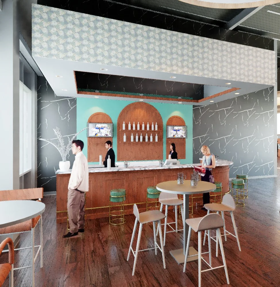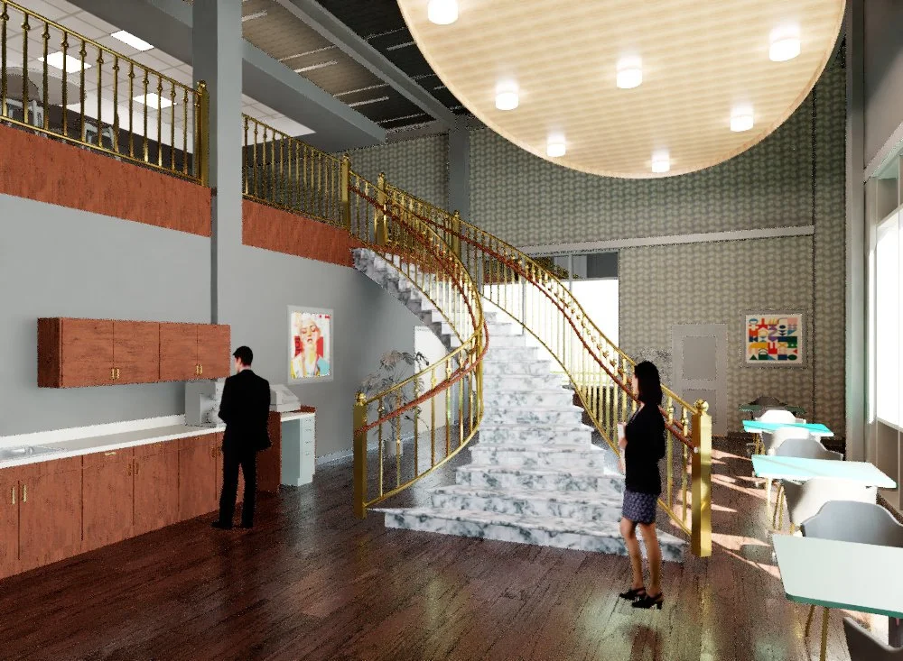 We were allowed to chose our own materials for the Blue Parrot Restaurant, so I wanted to emulate the Chicago brown bars. I used dark mahogany woods, marbles, and brass to capture the essence of a Chicago brown bar. I also wanted to play with curves and arches to challenge myself and push my Revit skills to the next level.
